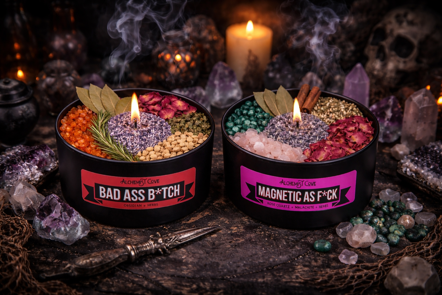 Discover authentic spiritual supplies at Alchemist Cove. From handcrafted crystal candles and smudge bundles to tarot candles, incense, and crystals, we offer everything you need for your spiritual practice, energy cleansing, protection, and meditation rituals. Whether you're seeking palo santo for smudging, tarot decks for divination, or healing crystals, our curated collection supports your journey toward balance, transformation, and inner wisdom.